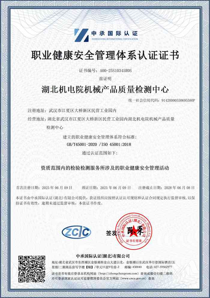 湖北機電院機械產品質量檢測中心注冊于2010年,由原湖北省機械產品質量監督總站(1985年湖北省機械廳授權成立)、湖北省機動車輛及零部件質量監督檢驗站(1996年湖北省技術監督局授權成立)、湖北省機電研究設計院理化中心(1987年省機電院成立)合并成立,是具有獨立法人資質的第三方檢測機構。檢測中心是湖北省高新技術企業、湖北省創新型中小企業,被省科技廳批準成立湖北省汽車零部件產品中試基地、市科技局批準成立武漢市汽車零部件產品中試基地,是省鑄造協會、省鑄鍛熱協會、省模具協會、省汽車工業協會、省機械行業標委會理事單位。